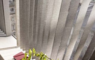 A szalagfüggöny lamellákból áll, amik 180 fokban forgathatóak, így segítségükkel folyamatosan követhetjük a napsugarak beesési szögét, ezáltal sosem lesz zavaró, ha besüt a nap az épületbe.